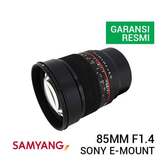 Samyang 85mm F1.4 AS IF UMC for Sony NEX adalah lensa prime telefoto compact yang kompatibel dengan format full frame dan APS-C dan menyediakan focal length equivalent 127.5mm saat digunakan pada kamera digital mirrorless Sony E-mount APS -C. Aperture maksimum f/1.4 yang cepat dan cerah efektif dalam situasi cahaya rendah dan menyediakan depth of field yang dangkal.