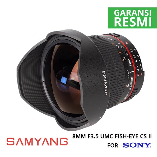 Samyang 8mm F3.5 UMC Fish-Eye CS II for Sony NEX adalah lensa fisheye wide angle yang canggih yang dirancang untuk kamera refleks digital dengan sensor APS-C. Optiknya terdiri dari 10 elemen lensa yang diatur dalam 7 kelompok. Parameter optik produk sangat tinggi, berkat elemen aspherical hibrida dan lapisan anti-refleksi UMC berlapis-lapis. Lensa menyediakan bidang diagonal pandang sebesar 180 derajat, sedangkan jarak fokus minimum hanya 0,3 meter. Lensa ini dilengkapi dengan lens hood yang bisa dilepas.