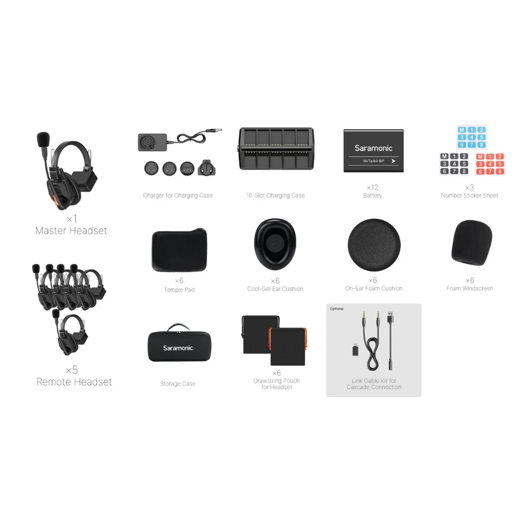 • Saramonic WiTalk9-6S 6-Person Full-Duplex Wireless Intercom System with Single-Ear Headsets (1.9 GHz)