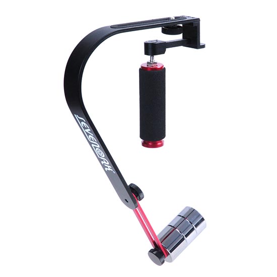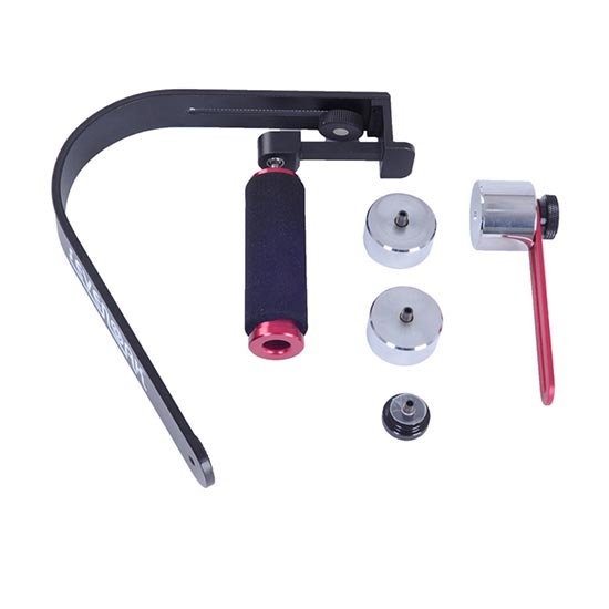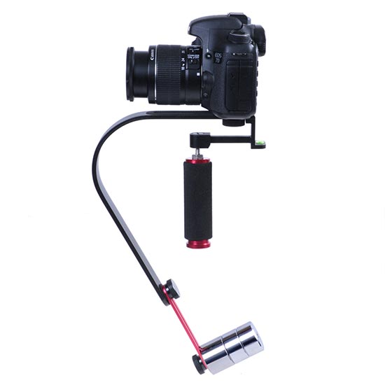 Dengan gimbal dan counterweight yang dapat diatur, membantu kamera tetap stabil dan seimbang, dan dengan bubble level pada bagian kepala gimbal untuk melihat keseimbangan kamera.