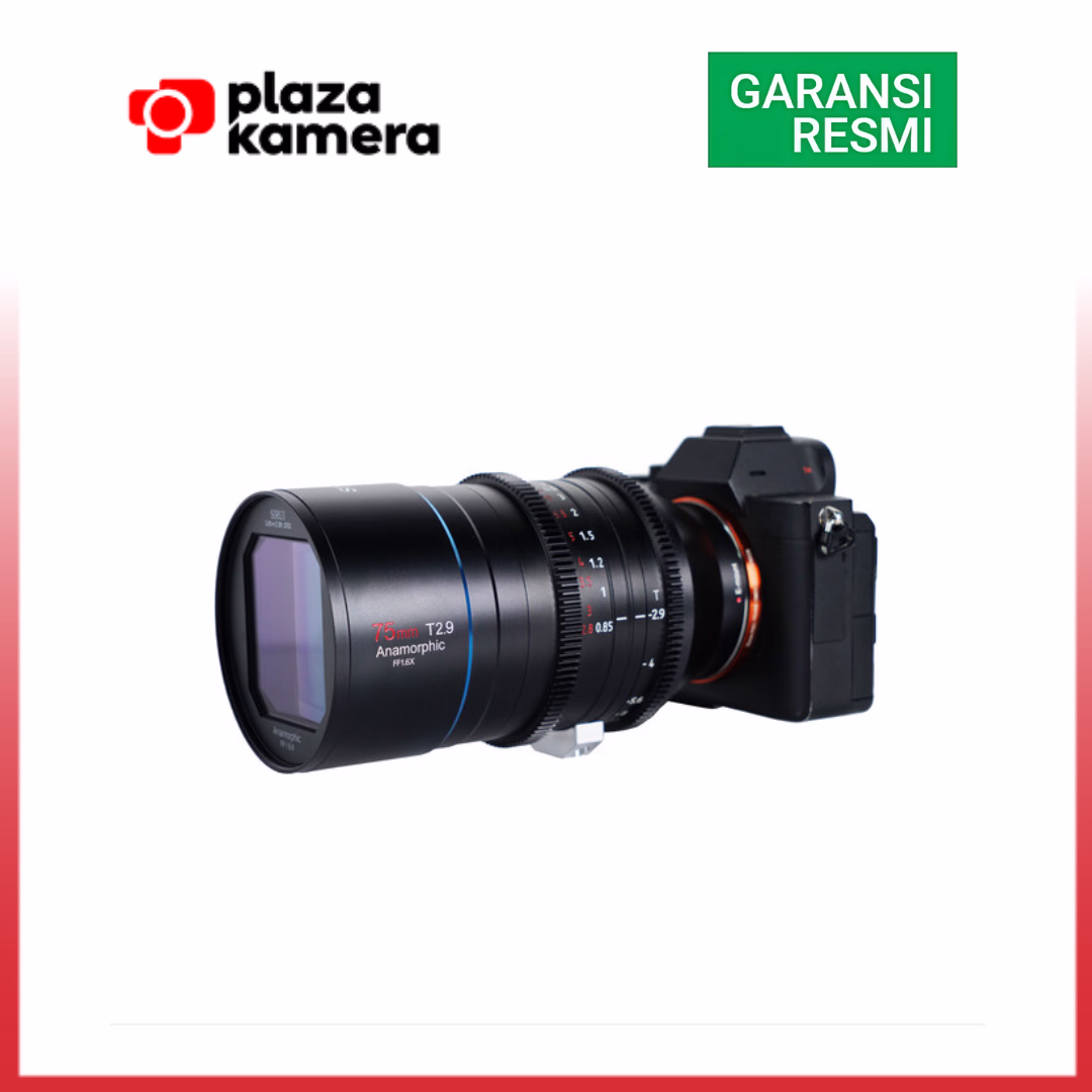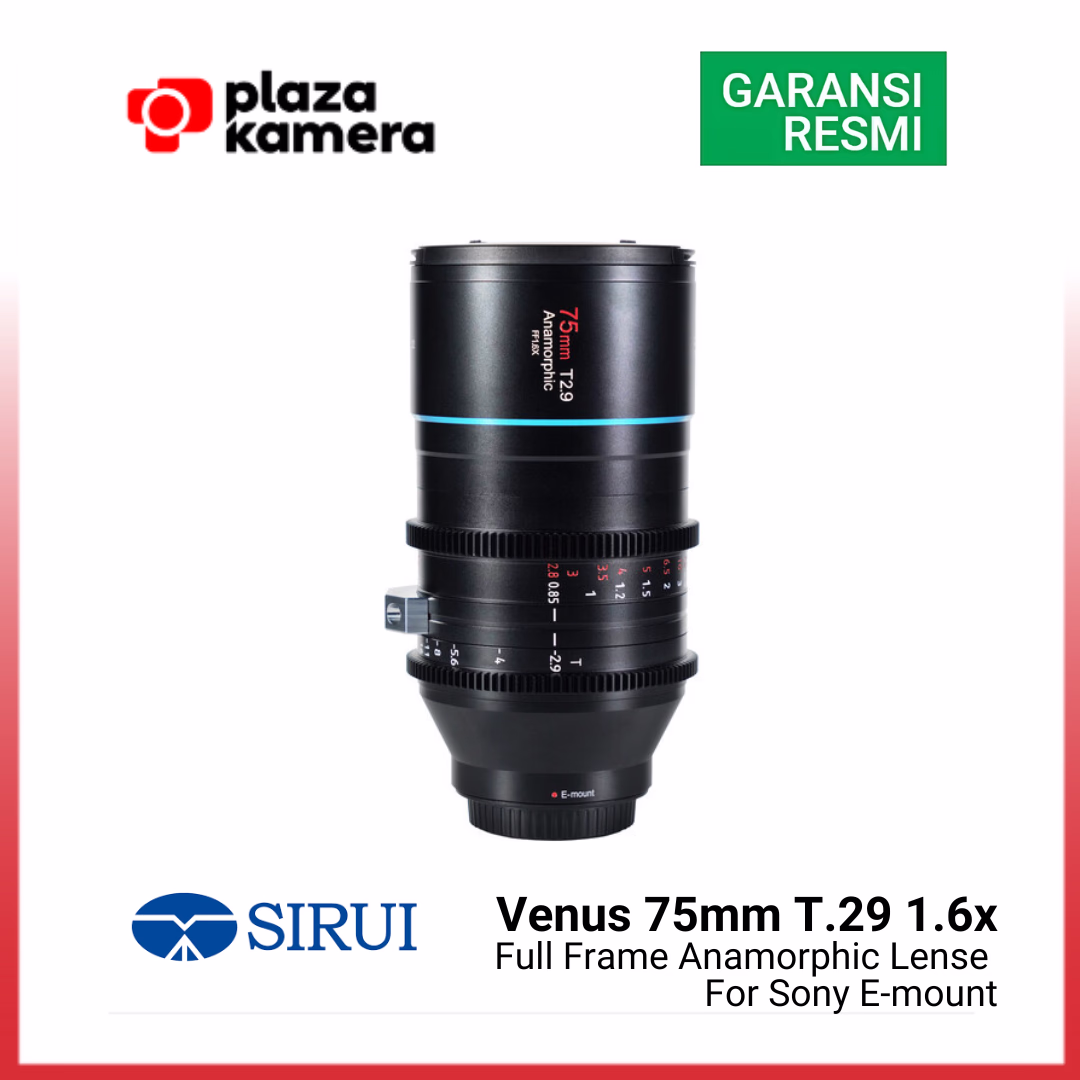 Lensa Sirui Venus 75mm, Sirui 75mm T2.9 1.6x Full-Frame Anamorphic Lens (Sony E-mount) adalah lensa anamorphic sinematik yang mampu menghasilkan sudut pandang lebih lebar setara lensa full-frame 22mm. Lensa ini ideal untuk arsitektur, lanskap, interior, dan ruang sempit, memberikan detail yang kaya serta tampilan visual khas film profesional.
