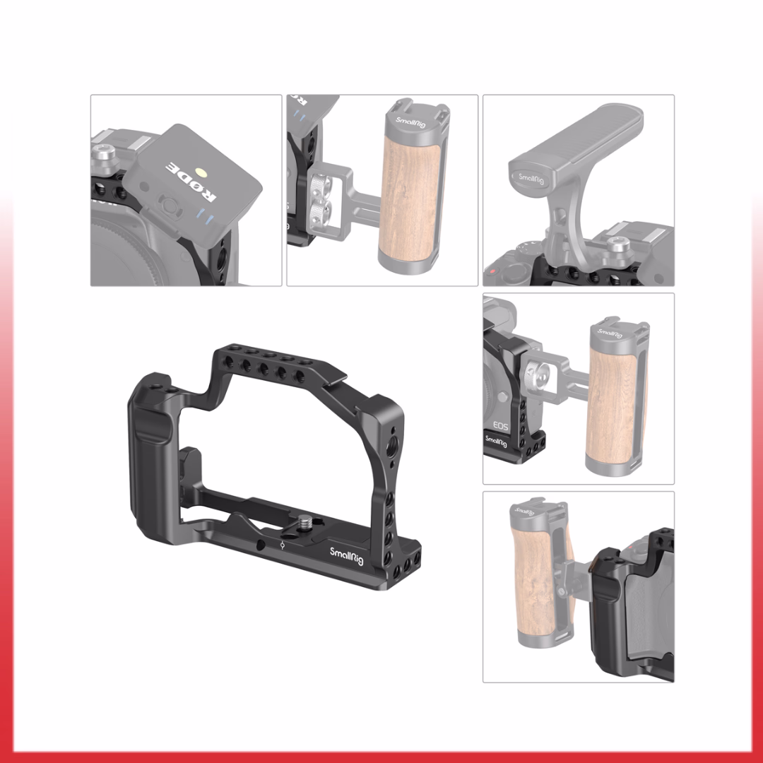 1.This cage is NOT compatible with SmallRig Wooden Side Handle 2093 or SmallRig Aluminum Side Handle HSS2425;
