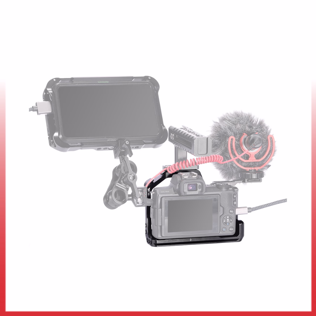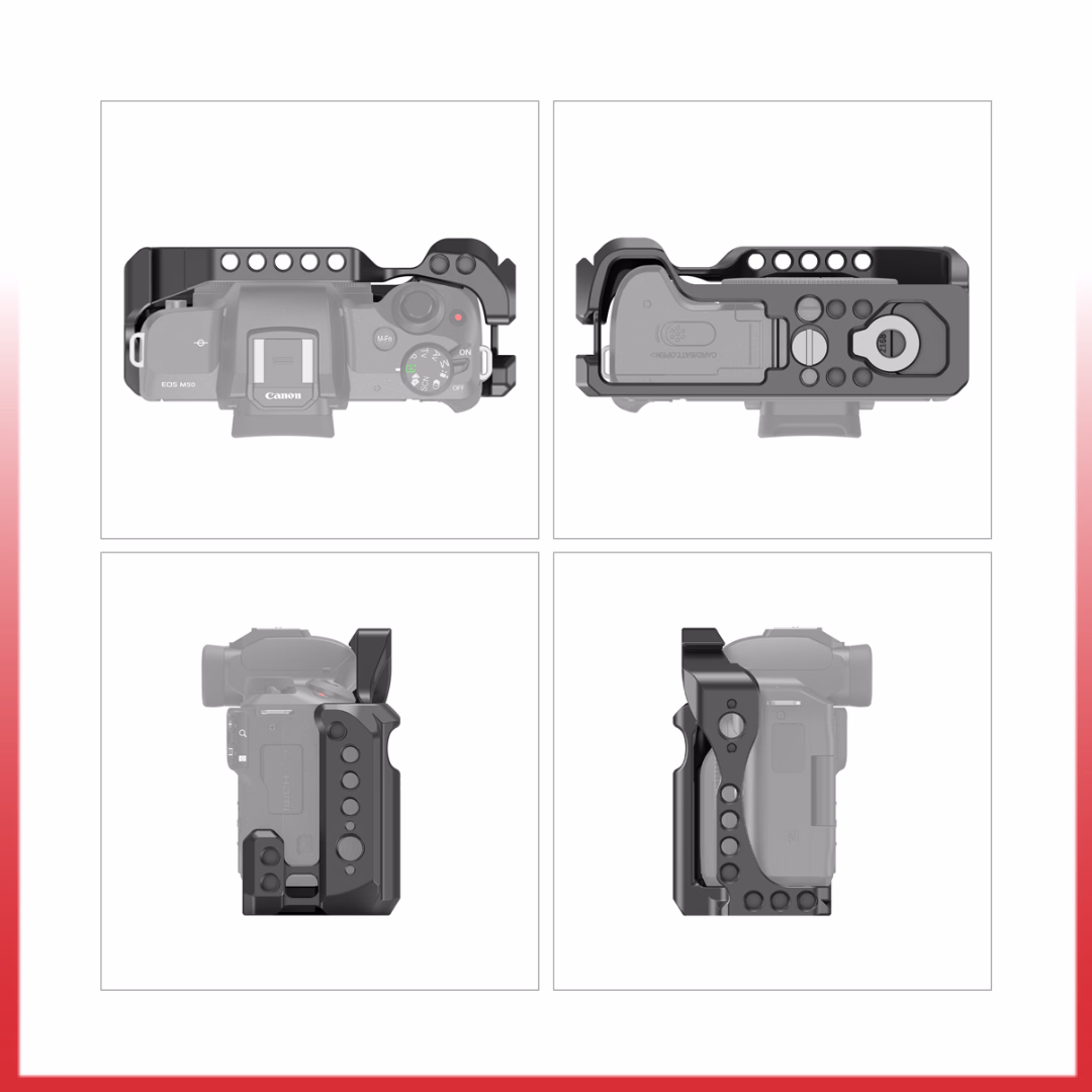 SmallRig Camera Cage for Canon EOS M50/M50 II/M5 2168 provides formfitting protection and accessory mounts for your camera. It mounts to the camera using a 1/4″-20 screw, with anti-twist design and rubber cushion on the base plate preventing wiggles or scratches. It comes with multiple 1/4″-20 and 3/8″-16 threaded holes allowing mount of accessories. For example, you can attach SmallRig Lightweight Top Handle 2949 or 2821 for hand-held shooting, and use SmallRig Cable Clamp 1822 to protect the HDMI cable. ARRI locating holes on the side are designed to work with SmallRig Aluminum Arri Locating Side Handle HSS2426 or SmallRig Ball Head Magic Arm 2115. The cage features a built-in Arca plate on the bottom which makes it convenient to directly mount on Arca clamps. The cage maintains full access to the camera’s buttons, ports, and battery. It comes with attachment points for hand straps and neck-straps. A flat screwdriver is included on the bottom of the cage.