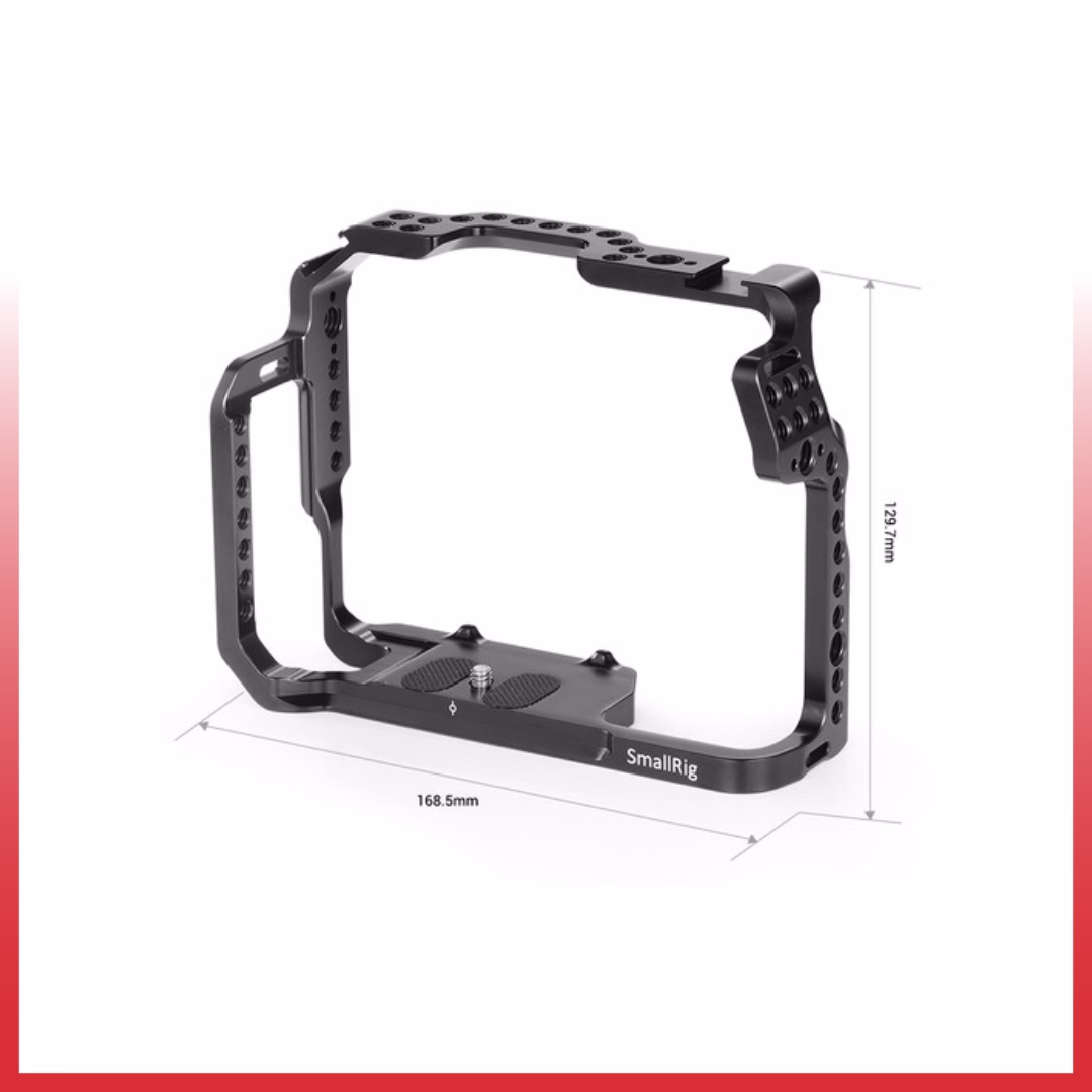 Desain cage juga mendukung penggunaan tripod, slider, maupun rig tanpa mengganggu keseimbangan kamera.