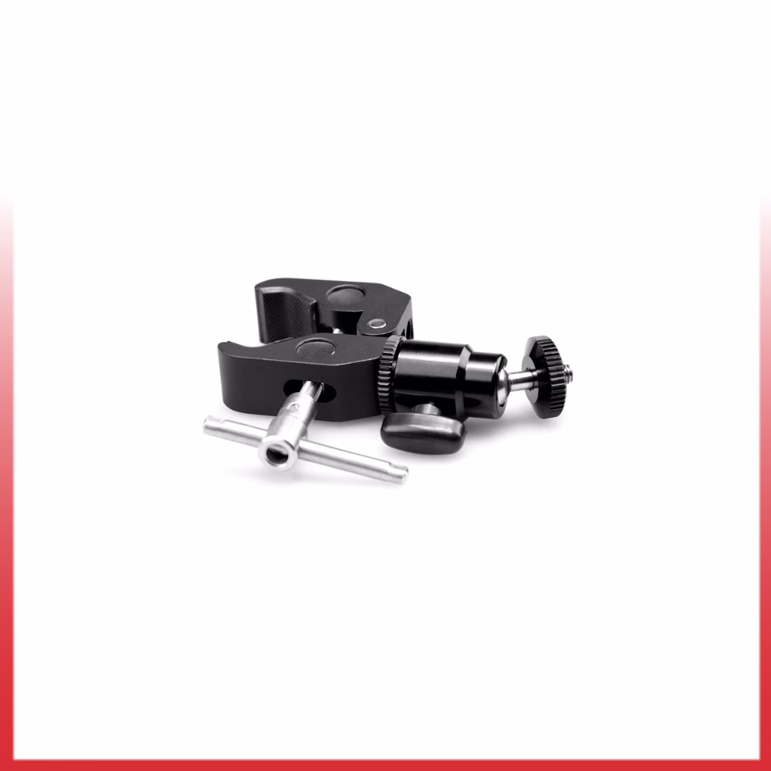 Built with a strong clamping mechanism, the mount ensures a firm and stable grip, reducing unwanted movement during shooting. The integrated ball head with a standard 1/4″-20 screw enables precise angle adjustments, allowing users to quickly position monitors, LED lights, microphones, action cameras, or other accessories at the desired angle.