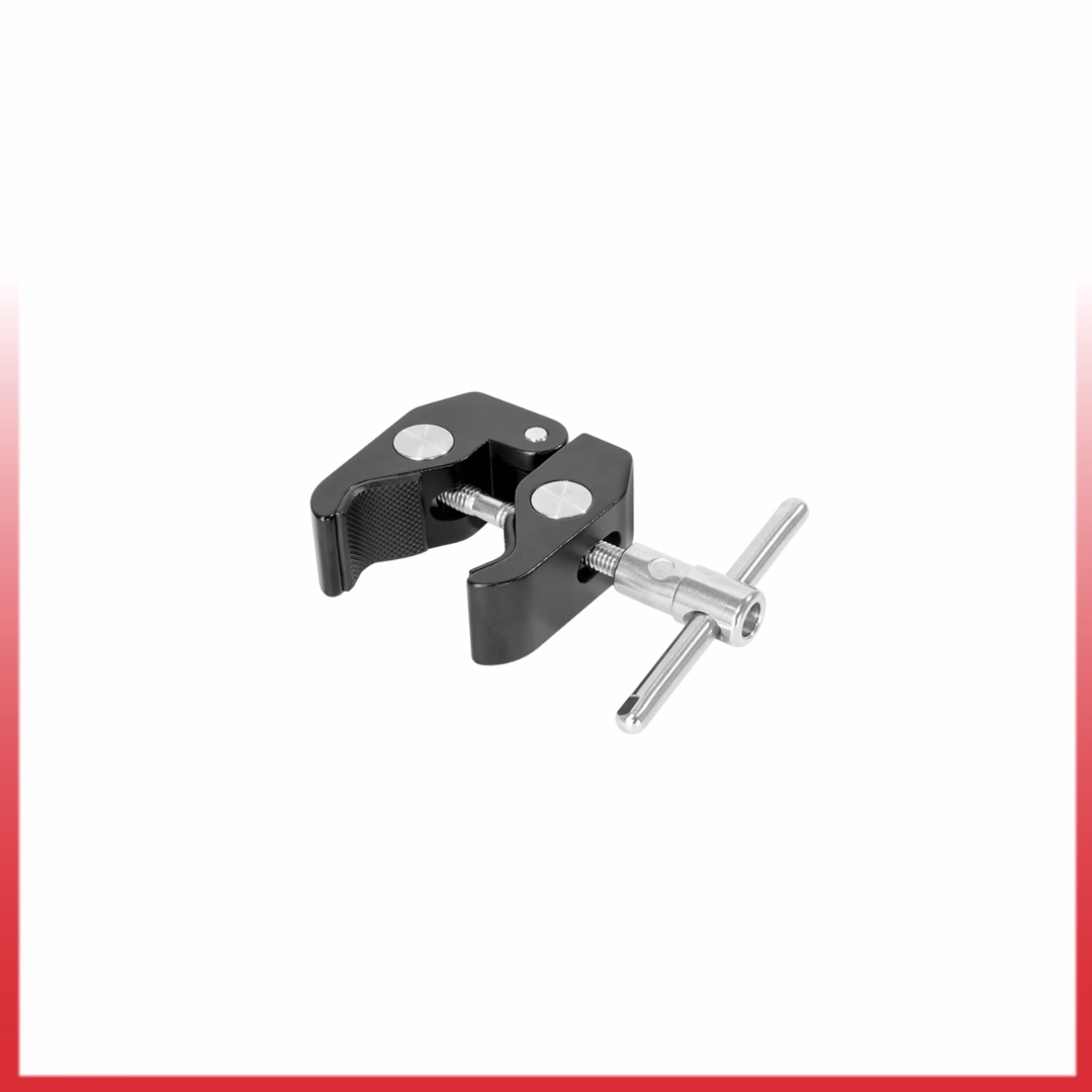 An ergonomic locking knob allows quick tightening and release, making it easy to reposition accessories on the fly. This is especially useful for fast-paced productions where efficiency and adaptability are essential. The compact form factor also makes the clamp easy to transport and store in a camera bag or production kit.