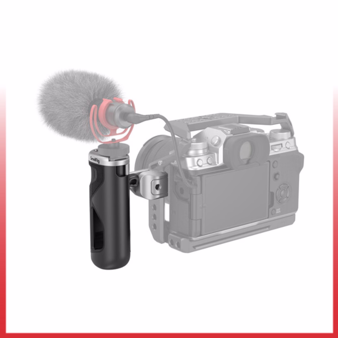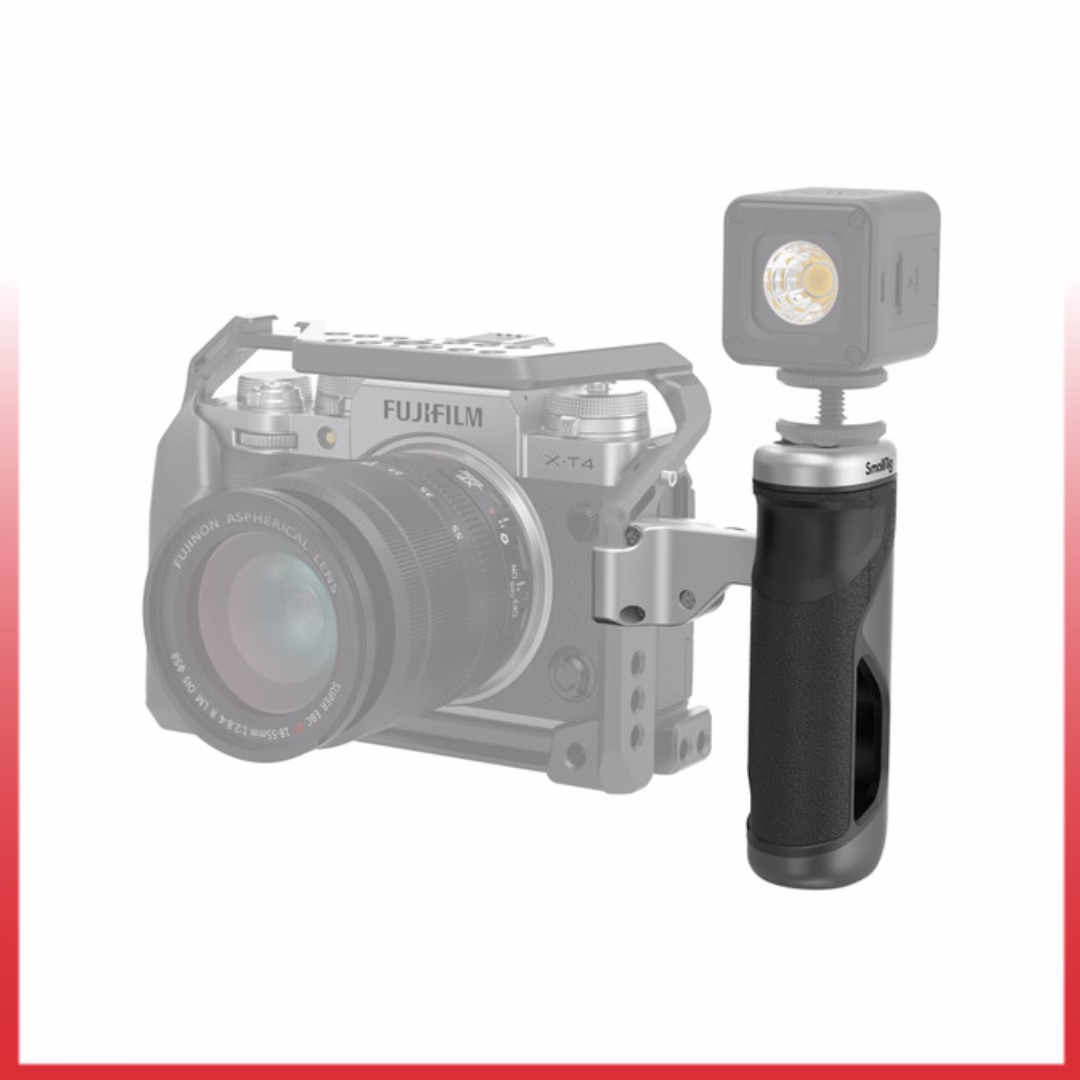 This side handle features multiple 1/4”-20 threaded holes and accessory mounting points, enabling users to attach monitors, microphones, LED lights, or other camera accessories with ease. The ergonomic grip provides a secure and comfortable hold, helping to reduce hand fatigue during extended handheld shooting sessions.