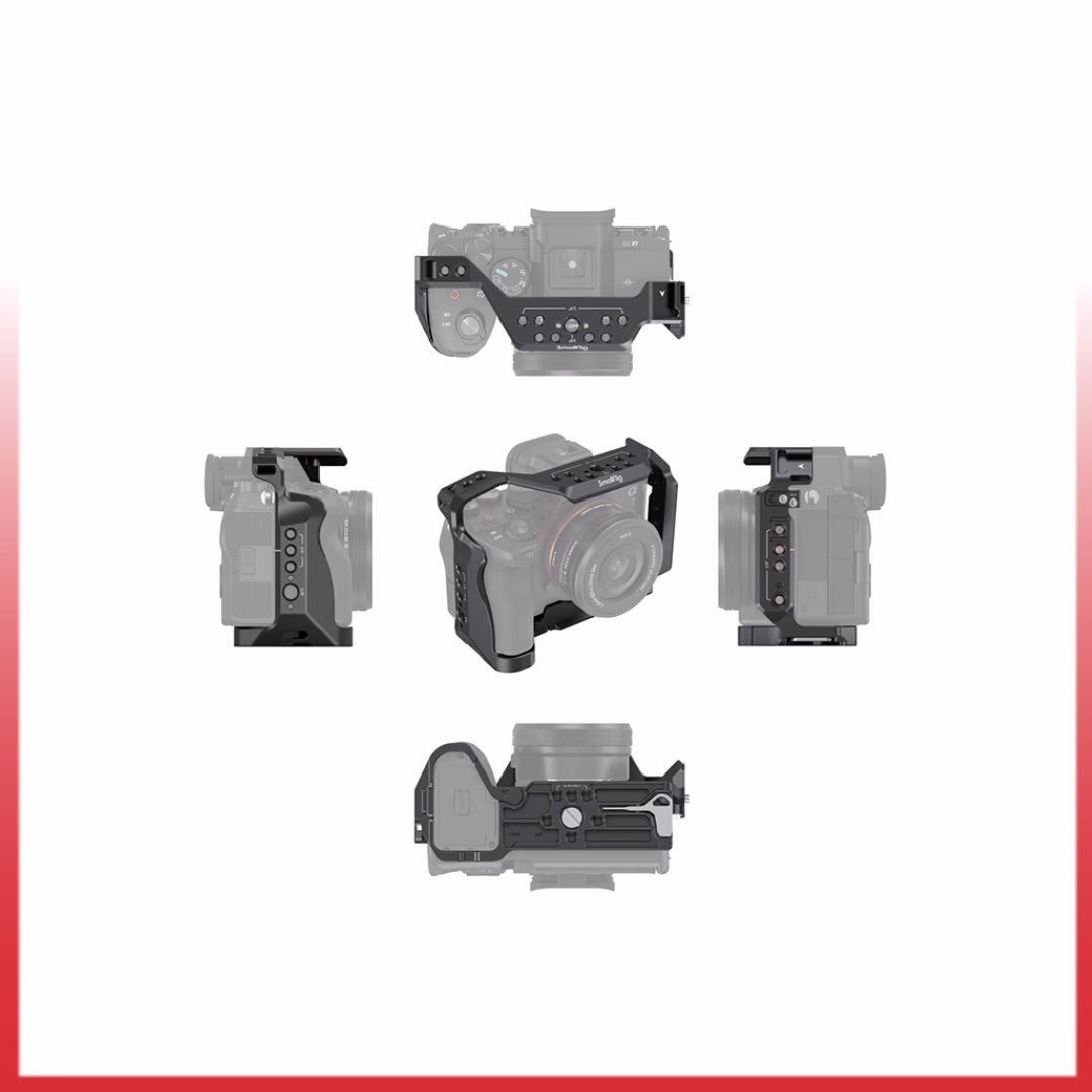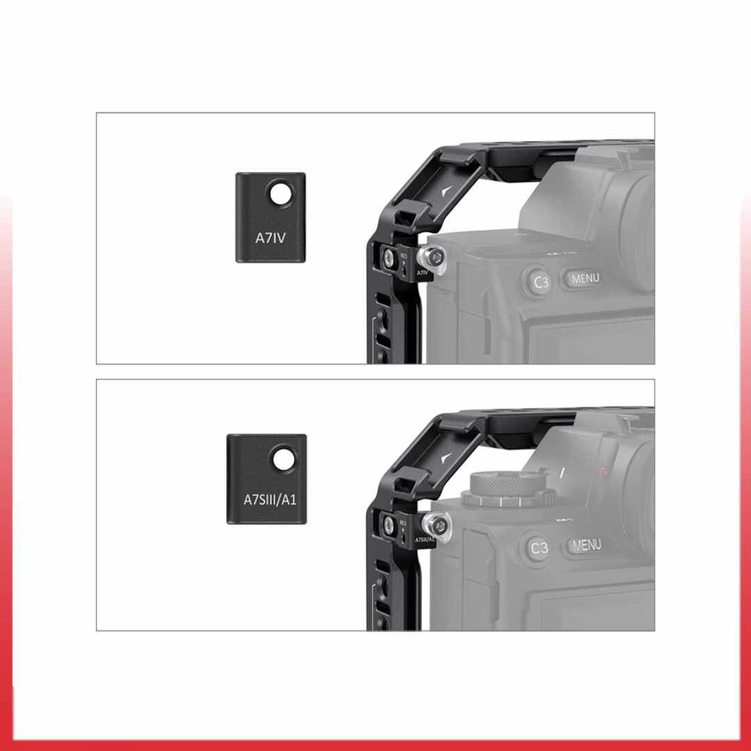 SmallRig Full Camera Cage untuk Sony Alpha 7 IV/Alpha 7 S III/Alpha 1/Alpha 7R IV 3667 dirancang untuk menyediakan dudukan aksesori dan melindungi kamera. Dua pelat samping pengunci disertakan, bersama dengan satu sekrup 1/4″-20 di bagian bawah, untuk mengunci kamera dan mencegah defleksi. Spacer pelindung all-around built-in mencegah kamera tergores. Sangkar memberikan akses ke antarmuka , dial, kancing, atau pintu baterai. Terdapat kunci pas spindel di kompartemen baterai yang sesuai dengan kurva kamera dan menyisakan ruang untuk jari kelingking agar nyaman digenggam. 1/4″-20 lubang berulir, lokasi ARRI 3/8″ -16 lubang, dan sepatu dingin mendukung pegangan atas 2165, pegangan samping 2093, dudukan monitor 2903, mikrofon, lampu LED, monitor, dll. Pelat pelepas cepat Arca di bagian bawah kompatibel dengan DJI RS 2/RSC 2/ RS 3 / RS 3 Pro dan pelat pelepas cepat (pad) stabilizer DJI RS 2/RSC 2 untuk pemotretan stabilizer. Penjepit Kabel HDMI opsional 3000 bekerja dengan Alpha 7 IV/Alpha 7S III untuk melindungi antarmuka dan memastikan transmisi sinyal yang stabil selama pembuatan film. Lubang di samping dan bagian bawah sangkar memungkinkan memasang aksesori seperti tali tangan PAC 2456 dan tali bahu PSC2428. Selain itu, sangkar dilengkapi dengan kunci pas magnet internal yang memfasilitasi pembongkaran dan perakitan.