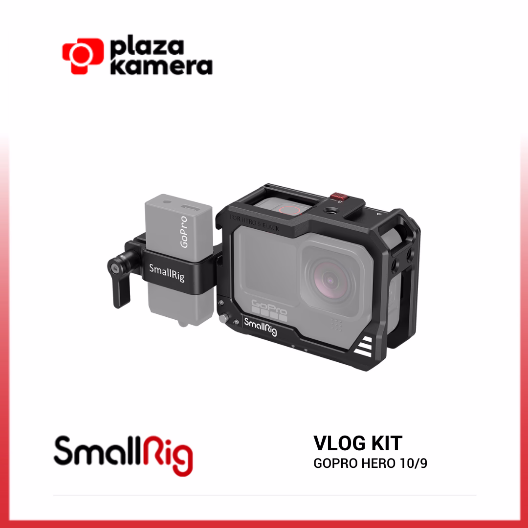 SmallRig GoPro Hero 10/9 Black Vlog Kit 3088 is a Vlog kit designed for protecting the camera, providing multiple accessory mounts, and compatible with microphone adapters. The cage supports lens replacement , and it’s compatible with the Max lens mod. The cage is locked by pressing the cover and released by pushing the button. The top and right sides are equipped with two cold shoe mounts that can be connected to accessories such as microphones and LED lights. The bottom contains a foldable GoPro mount compatible with the original GoPro baseplate, and a 1/4 threaded hole can also be directly connected to a tripod. The side panel is a quick-release for battery switches. You can charge the camera through the USB-C port without opening the panel. Kit includes an audio adapter that can be compatible with GoPro 7/8 original microphone adapter.