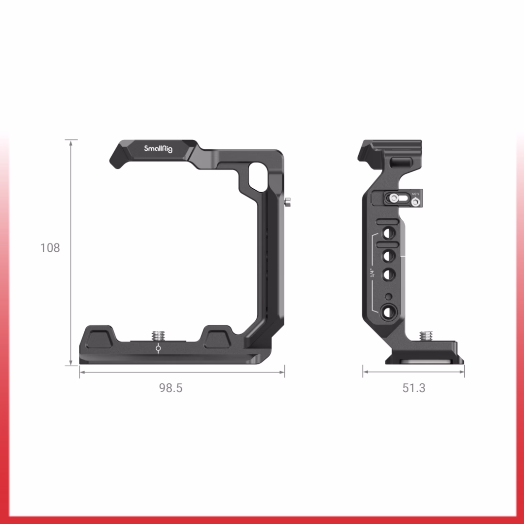 Multiple mounting points are integrated into the cage, including standard threaded holes that support microphones, LED lights, monitors, side handles, and other accessories. This versatility makes the cage suitable for a wide range of shooting styles, from cinematic video production and interviews to vlogging and hybrid photo-video workflows. The open structure also allows easy access to the battery compartment, memory card slot, and camera ports without removing the cage.