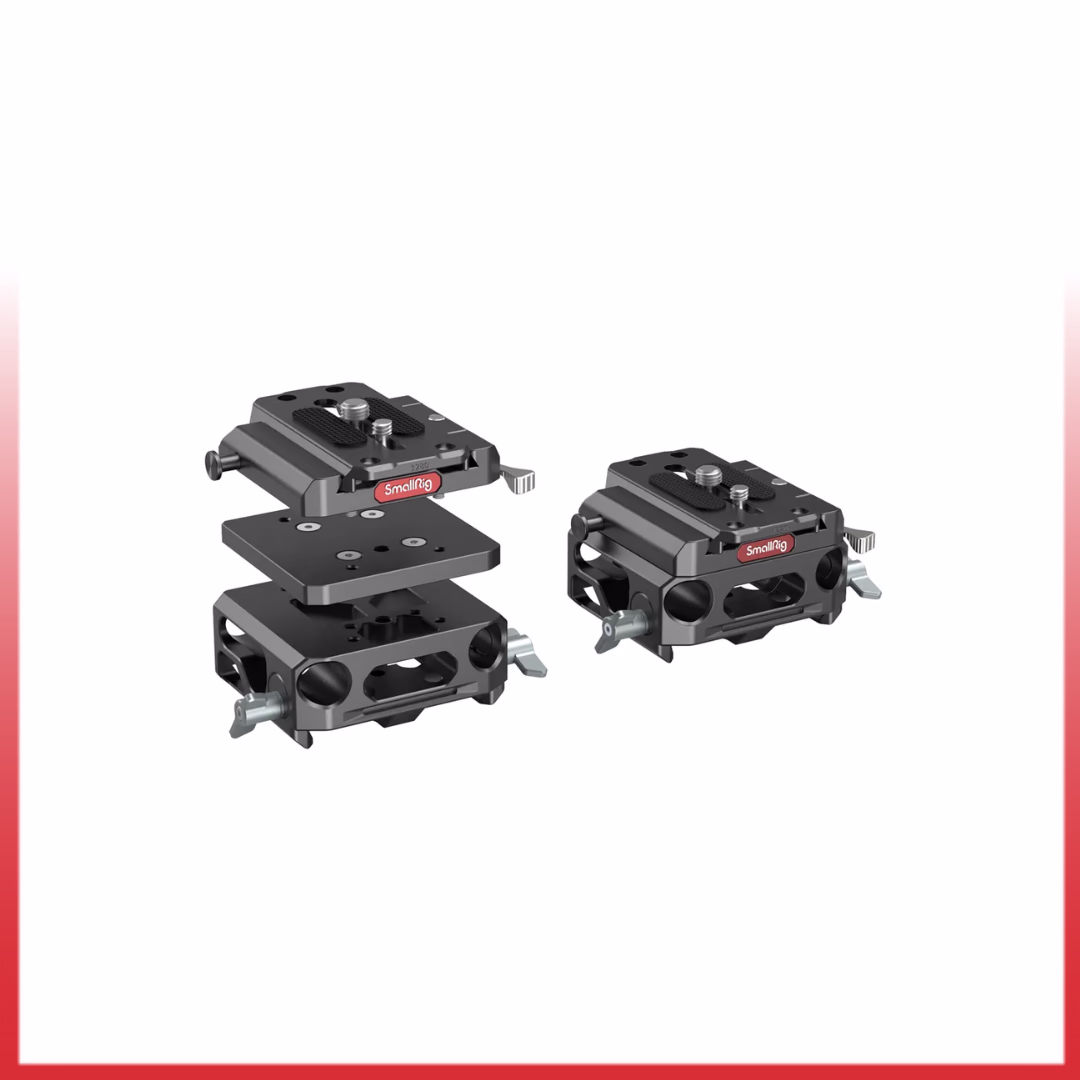 The SmallRig Lightweight Baseplate with Dual 15mm Rod Clamp is designed to serve as a solid foundation for professional camera rigs while keeping the overall setup compact and lightweight. It is ideal for filmmakers and videographers who require a reliable baseplate for mounting accessories such as follow focus systems, matte boxes, lens supports, and power solutions.