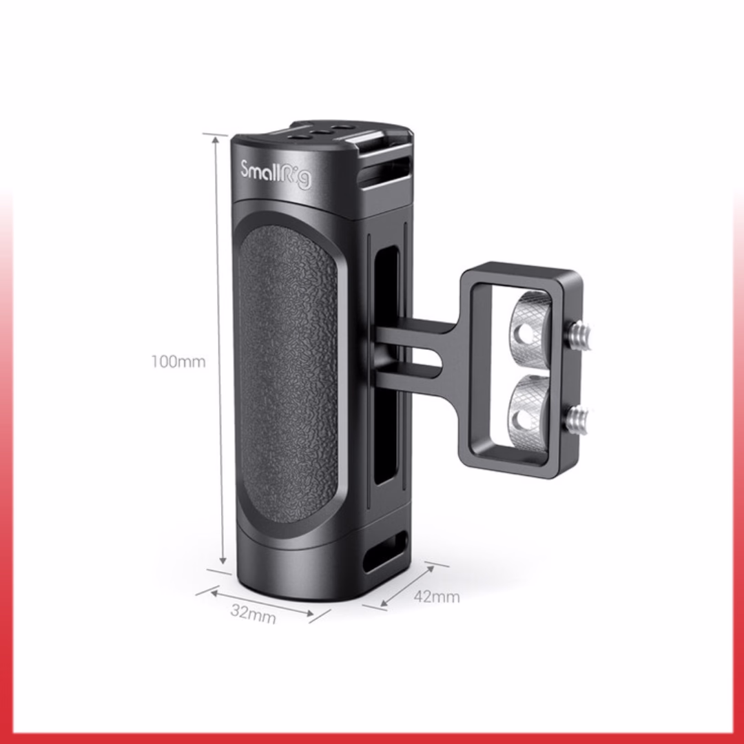 Add a handgrip to your rig with this Mini Side Handle with Dual 1/4″-20 Screw Mount from SmallRig. The ultracompact handle provides a left- or right-handed grip for your camera cage or rig. It can support rigs and accessories up to 7.7 lb.