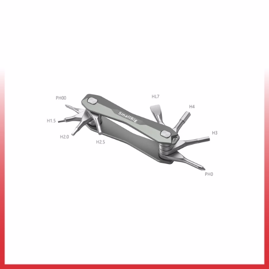 SMALLRIG Multi-Tool For Camera and Gimbal TS2432 features a variety of useful fold-out tools for videographers when working with camera gear and gimbal accessories. It is constructed with stainless steel tools and an aluminum casing. This eight-tool screwdriver includes a 7mm length flat head screwdriver, H1.5, H2.0, H2.5, H3, H4 Allen wrenches, and two Phillips head screwdrivers PH0 and PH00. It works well with camera cages, handles, plates and gimbal accessories. Besides, the folding tool consists of almost all screwdrivers which correspond with DJI Ronin S/SC and Zhiyun gimbal stabilizers so that you can use the tool for simple repair. The flat head screwdriver is only 7mm length to fits most flat-head screws. The Multi-Tool weighs only 55g and it’s very easy to carry around.Note: