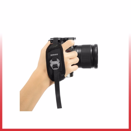 SMALLRIG PAC2456B CAMERA HAND STRAP Add support to your camera when using it handheld with this. The strap adjusts to the size of your hand, and connects to a cage or handgrip with a strap slot width of 12mm or wider. The strap is made from wear-resistant PU material, is filled with EVA , and has a microfiber cover for a comfortable fit. The hand strap supports a camera rig weighing up to 27.6 lb.