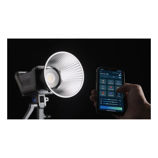 Nyalakan perlengkapan menggunakan catu daya AC/DC yang disertakan atau baterai 14.4V/26V yang disediakan pengguna menggunakan kabel daya D-Tap ke 3-pin XLR opsional. Kipas pendingin terintegrasi menyala secara otomatis untuk mencegah cahaya dari panas berlebih, dan pada 27db kipas lebih senyap daripada lemari es atau kebanyakan bisikan. Menampilkan mode sembilan efek untuk efek pencahayaan kreatif, perlengkapan ini dapat digunakan untuk berbagai efek dramatis. Untuk menambahkan softbox dan alat penyebar/pembentuk cahaya lainnya, perlengkapan ini kompatibel dengan aksesori kontrol cahaya Bowens. Layar tampilan terintegrasi memungkinkan Anda untuk melihat pengaturan lampu secara sekilas, sedangkan untuk penyesuaian Anda dapat mengontrol cahaya secara lokal atau melalui aplikasi SmallGoGo, yang menyediakan kontrol nirkabel atas perlengkapan Anda dari jarak hingga 330′.