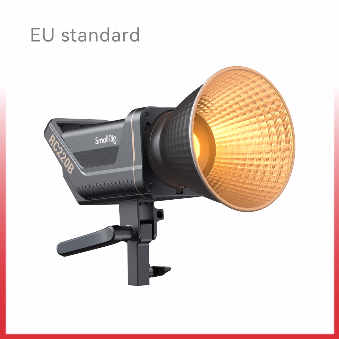 SmallRig RC220B COB Light (EU) 3621, the first generation point-source LED light of SmallRig. With the latest COB technology and SmallRig’s industrial design excellence, the RC220B is unique. With the included high-reflectance hyper reflector, at a distance of 1 meter (3.3 ft.), the center illuminance reaches 84,500 lux at 5600K, Far beyond the same level of products on the market. High color fidelity, CRI 95+, TLCI 96+. Standard Bowens mount allows it to be compatible with more light-control accessories. 9 built-in light effects “Paparazzi, Firework, Lightning, Fault Bulb, TV, Breath, Flash, Party, Flame” and brightness can be remotely controlled by SmallGoGo.