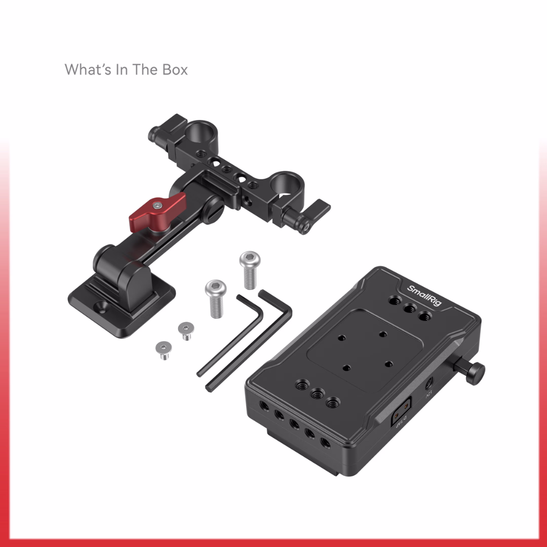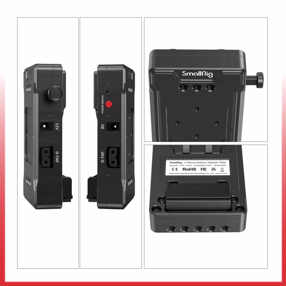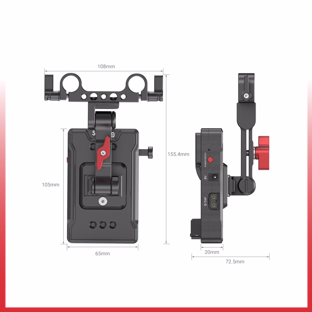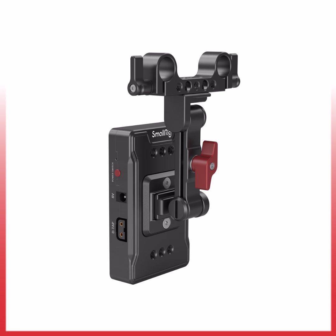 SmallRig V Mount Battery Adapter Plate (Basic Version) with Extension Arm 3499 is designed to provide greater battery life to your camera rig via a V mount battery. Its standard quick-lock V mount supports most V mount batteries. Output ports, including an 8V DC port, a 12V DC port, and two 14.8V D-Tap ports, work with a V mount battery to power your camera and other equipment (e.g. monitor, transmitter, follow focus, mobile phone, etc.). It features a power switch that controls all of the output ports more quickly and conveniently and comes with a 15mm dual rod clamp with an adjustable extension arm that suits a 15mm rail support system and can quickly reposition the battery adapter plate. In addition, multiple 1/4”-20 thread holes allow attaching other accessories such as super clamp mount and magic arm.