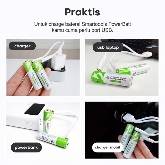 • Kamu bisa cas ulang baterai Smartoools PowerBatt hingga 1200 kali!