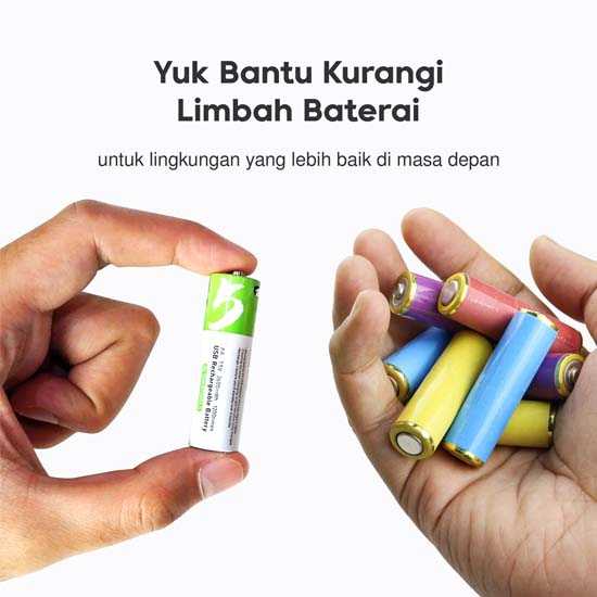 Kamu bisa cas baterai dengan kabel USB Type-C dimanapun menggunakan dan kapanpun jadi langsung pakai dong!