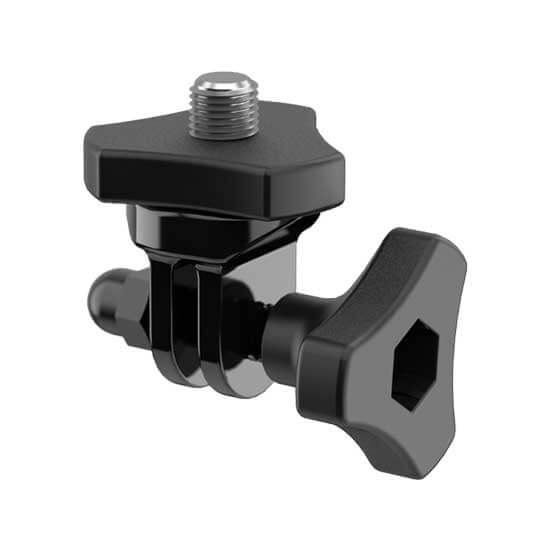 Adapter ini memungkinkan Anda untuk memasang kamera ke Pole, Handle, atau perangkat lain yang menampilkan standard GoPro 3-prong mount. Fitur sekrup 1/4″-20 dengan pengencangan roda serta dilengkapi dengan thumbscrew dan mur untuk mengamankan adaptor ke 3-prong mount pada perangkat Anda.