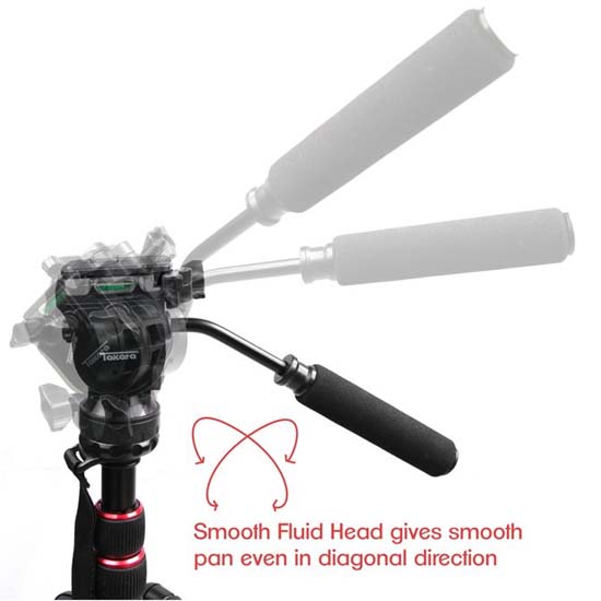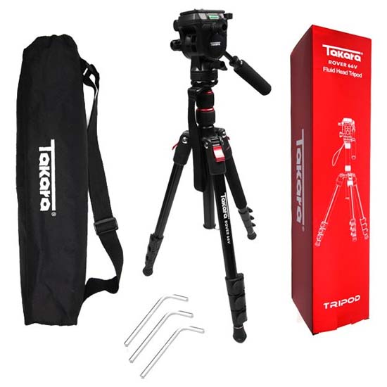 Tripod dilengkapi dengan Fluid Video Head yang memiliki desain QR Plate yang dapat memudahkan untuk melepas kamera dari tripod atau monopod. Kaki tripod menggunakan desain flip lock yang compact, dengan rubber feet yang dapat dilepas menjadi spike feet agar lebih mudah digunakan diluar ruangan. Takara Rover 66 V dapat dilepas untuk menjadi monopod dengan dua cara mudah dan cepat.