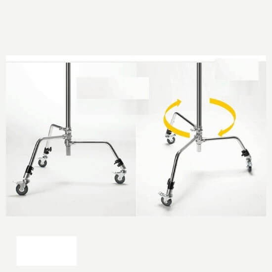 Fitur hebat lainnya dari roda ini adalah desain penggulungannya yang mulus. Roda ini mudah menggelinding dan tidak berisik, sehingga memudahkan untuk memindahkan C-Stand di sekitar studio tanpa mengganggu subjek Anda. Hal ini khususnya berguna apabila Anda bekerja dengan subjek hidup, seperti hewan atau anak-anak, dan perlu memindahkan penyangga tanpa menimbulkan suara yang dapat mengagetkan mereka.