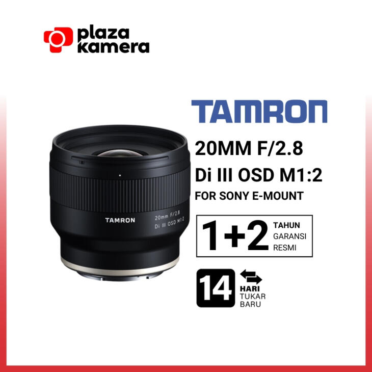 Tamron 20mm f2.8 Di III OSD M1:2 For Sony sebuah lensa prime wide-angle fleksibel yang dirancang untuk kamera mirrorless full-frame Sony E-mount. Lensa ini menggunakan aperture maksimum yang cukup terang untuk mencapai profil yang ramping dan ringan yang ideal untuk pemotretan sehari-hari. Memberikan kontribusi pada fleksibilitasnya adalah rasio perbesaran maksimum 1:2 setengah nyata dan jarak fokus minimum 4,3″ untuk bekerja dengan subjek close-up.