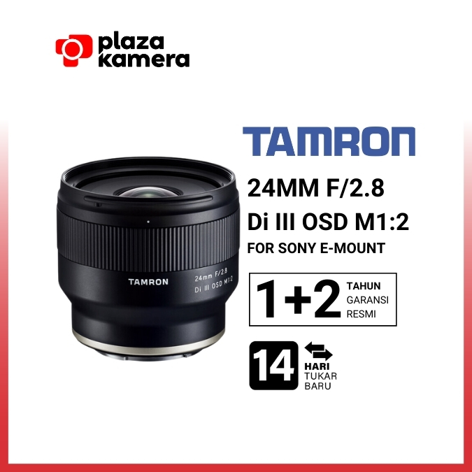 Tamron 24mm f2.8 Di III OSD M1:2 For Sony adalah lensa prime yang ramping dan ringan yang dirancang untuk kamera mirrorless Sony E-mount full-frame. Dengan memanfaatkan aperture maksimum f/2.8 yang sederhana, lensa ini tetap memiliki desain yang sangat ramping, membuatnya ideal untuk aplikasi fotografi perjalanan. Salah satu kelebihan lainnya adalah rasio perbesaran maksimum setengah hidup 1:2 dan jarak fokus minimum 4.7″ untuk bekerja dengan subjek close-up.