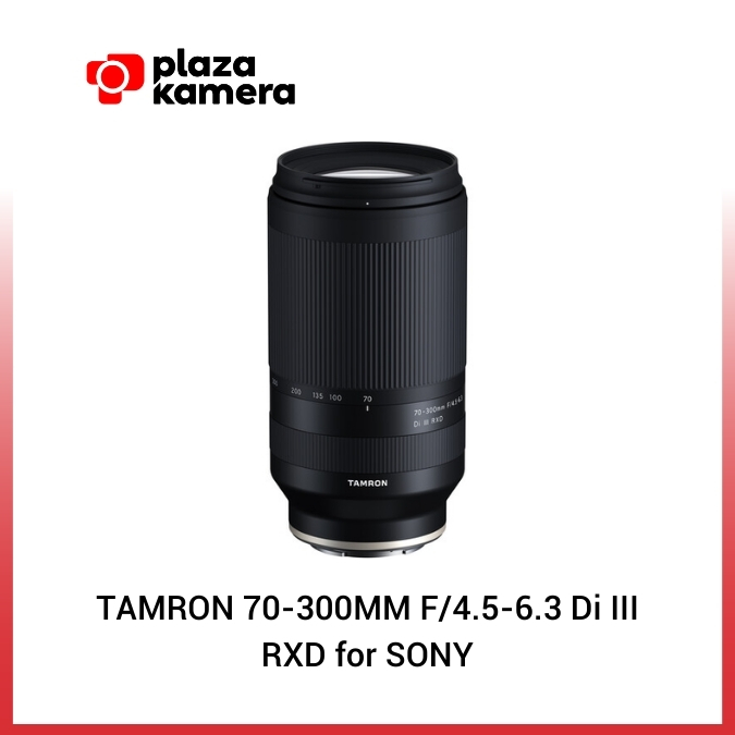 Tamron 70-300mm F/4.5-6.3 Di III RXD for Sony menyediakan rentang zoom telefoto yang populer untuk kamera mirrorless full-frame Sony E-mount. Lensa ini mencakup rentang telefoto dari yang singkat hingga panjang dan memiliki panjang hanya 5,8 inci dengan diameter maksimum 3 inci, serta berat hanya 1,2 pound. Lensa ini menawarkan kinerja optik dengan koreksi aberasi yang memberikan kualitas gambar tinggi. Unit motor langkah RXD dari Tamron memberikan operasi cepat, presisi tinggi, dan hening, serta memanfaatkan sepenuhnya fitur kamera termasuk Fast Hybrid AF dan fungsi Eye AF dari Sony. 70-300mm f/4.5-6.3 adalah lensa zoom telefoto yang sangat praktis dan dapat digunakan untuk berbagai gaya pemotretan, termasuk olahraga, acara-atletik lainnya, satwa liar, potret, dan lainnya.