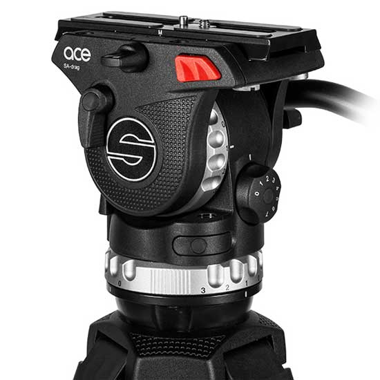 - Sachtler’s Synchronized Actuated Drag (SA-drag) fluid drag system for both pan and tilt