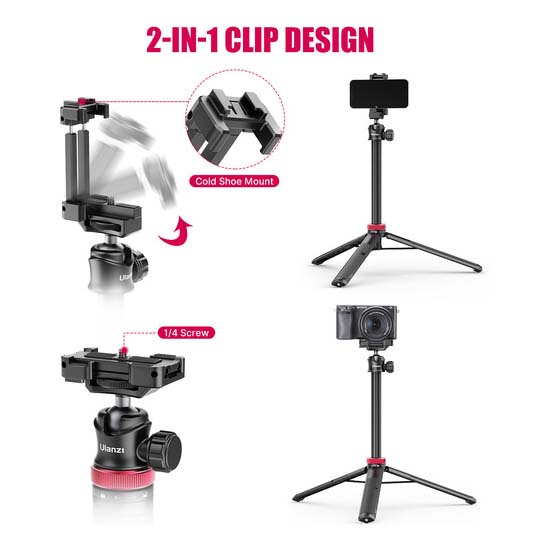 Ulanzi MT-44 juga dilengkapi dengan adaptor tripod standar 1/4 inci, sehingga dapat dengan mudah dipasangkan dengan kamera atau smartphone Anda. Anda bisa menggunakan tripod ini untuk merekam video, memotret, atau bahkan melakukan live streaming di mana saja.