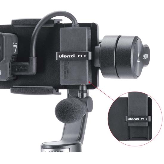 Ulanzi PT-6 Gopro Gimbal Adapter Plate dirancang khusus sebagai Storage Clip untuk Adapter Mikrofon Gopro, yang dengan sempurna memecahkan masalah adapter yang menggantung. Sekarang, anda dapat menggunakan GoPro pada gimbal anda dengan pelat ini, sehingga Anda dapat menggunakan Gopro di gimbal genggam smartphone dan menyelesaikan masalah pemasangan mikrofon.