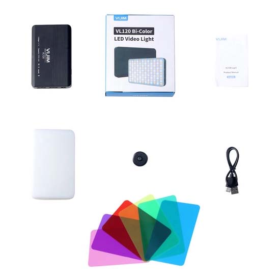 Ulanzi Vijim VL120 Rechargable LED Video Light dengan black body adalah powerful variable-color temperature light kecil dengan output dari 3200 hingga 6500K. Color temperature memiliki fitur stepless adjustment. Lampu begitu compact dan cukup ringan untuk dimasukkan ke dalam saku Anda, namun cukup tahan lama untuk dibawa ke mana saja dalam kamera atau tas gear. Selain penyesuaian suhu warna, cahayanya juga memiliki fitur dimming dari kecerahan 100 hingga 10%. Penutup difusi silikon yang dapat dilepas yang disertakan melembutkan output cahaya.