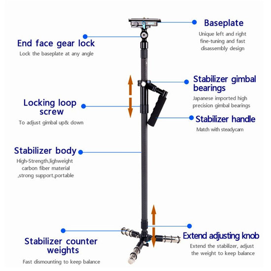 Dengan menggunakan Wondlan Magic 4+ MAG107 anda dapat menghasilkan video yang halus dan presisi. Selain itu, Wondlan Magic 4+ memiliki fitur yang dapat menyesuaikan naik/turun gimbal dan mengatur head dari stabilizer untuk mendapatkan angle yang anda inginkan untuk mendukung hasil video anda. Dan dari segi Spesifikasi wondlan memiliki tinggi maksimal 1350mm, tinggi minimal 830mm dan berat 1.35kg serta untuk kapasitas beban Wondlan Magic 4+ dapat memuat beban hingga 5 kg.