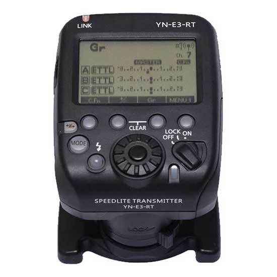 YN-E3-RT Wireless Speedlite Transmitter for Canon dari Yongnuo memiliki 16 channel, 5 grup wireless triggering device dengan rentang 100 meter. Transmitter menawarkan autoflash E-TTL II / E-TTL, manual flash, stroboscopic flash, auto external flash metering mode dari rasio kontrol flash 1: 8.