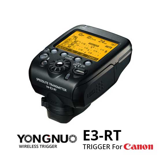 YongNuo E3-RT Wireless TTL Trigger for Canon kompatibel langsung dengan flash Canon 600EX-RT, Canon 430EX III-RT, dan flash Yongnuo YN600EX-RT dengan receiver nirkabel terpasang. Trigger ini mendukung semua fitur Canon ST-E3-RT, serta beberapa fitur tambahan.