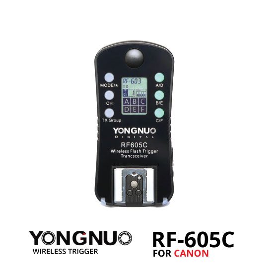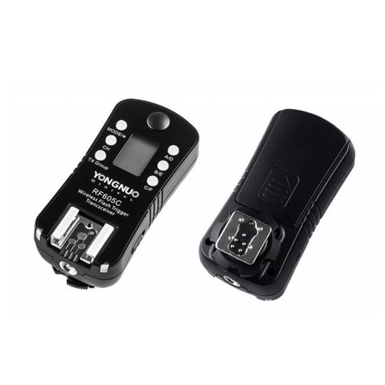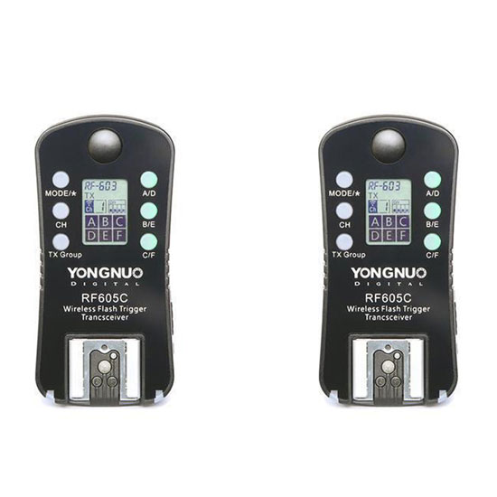 YongNuo RF-605C Wireless Trigger For Canon memiliki 16 channel , transceiver 2,4 GHz serta kabel shutter release untuk memicu kamera Canon . Setiap transceiver memiliki shoe male pada kamera di bawah serta hot shoe female di atas untuk memicu kamera atau unit flash , jangkauan nirkabel 100m dan kecepatan sync 1/320 detik . Selain itu , masing-masing memiliki shutter release dual- fungsi dengan fungsi half-press dan full-press untuk wake dan fire perangkat Anda.