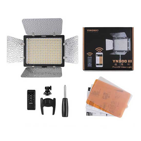 YongNuo YN-300C III LED Video Light merupakan salah satu rangkaian lampu LED on-camera. Lampu ini begitu ringkas dengan  3200-5500K tungston/daylight yang menawarkan dua mode dimming (rough dan fine), remote control IR, empat barndoor, tombol untuk menyesuaikan pencahayaan / power-on, dan dua panel filter (oranye dan putih). Selain itu, Lampu ini juga dilengkapi dengan remote control atau anda juga dapat menggunakan smartphone anda sebagai remote dengan basis Bluetooth (melalui aplikasi yang dapat didownload pada web resmi YongNuo) dan terdapat juga 8-channel yang dapat dikelompokkan melalui remote control IR atau aplikasi mobile.