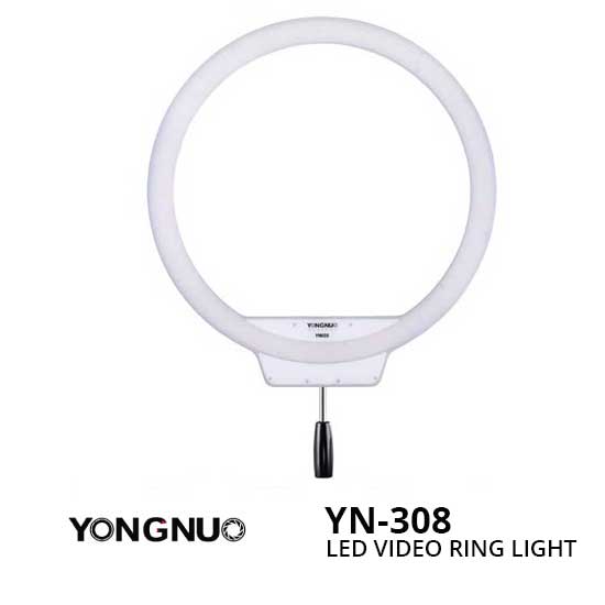 YongNuo YN-308 LED Video Ring Light memiliki fitur berbentuk khas dengan output 5500K dan LED dengan total: 308 titik. Dilengkapi dengan grip handle khusus untuk pegangan dengan tampilan yang sangat lembut dan sedikit terarah. Anda juga bisa memasangnya ke grip head dan memotretnya untuk mendapatkan efek smooth tanpa bayangan. Selain itu, jika anda menggunakan Ring Light untuk foto close up maka anda akan mendapatkan bentuk lingkaran unik dari cahaya yang tercermin di mata subjek Anda.