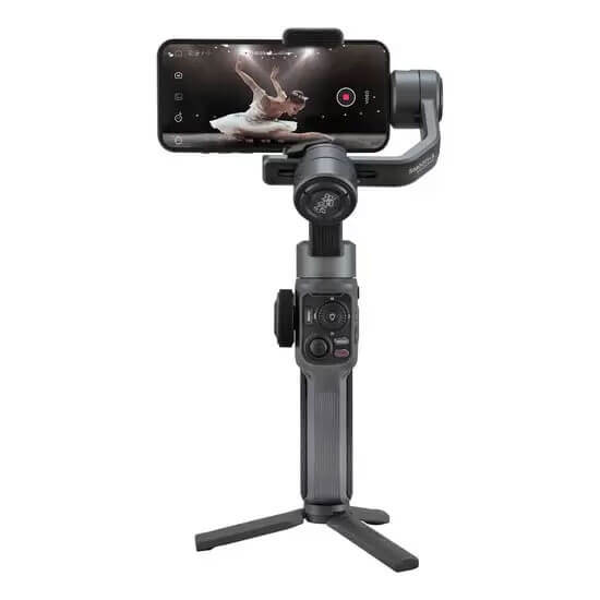 Zhiyun Smooth 5 with Magnetic Fill Light Stabilizer Gimbal telah diperbarui dan dirancang untuk pengalaman yang lebih ringkas dan intuitif guna memberikan fungsi bergaya bioskop kepada pembuat konten yang menggunakan ponsel mereka untuk merekam video. Saat digunakan dengan aplikasi ZY Play yang dapat diunduh gratis, panel kontrol memungkinkan pengguna Android dan iOS untuk mengontrol fungsi kamera gimbal dan smartphone seperti pengaturan fokus, zoom, time-lapse, dan foto.